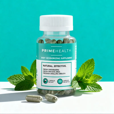 With PrimeHealth™ you'll enjoy full body odor protection, improved gut health & clearer skin, all from one daily capsule.